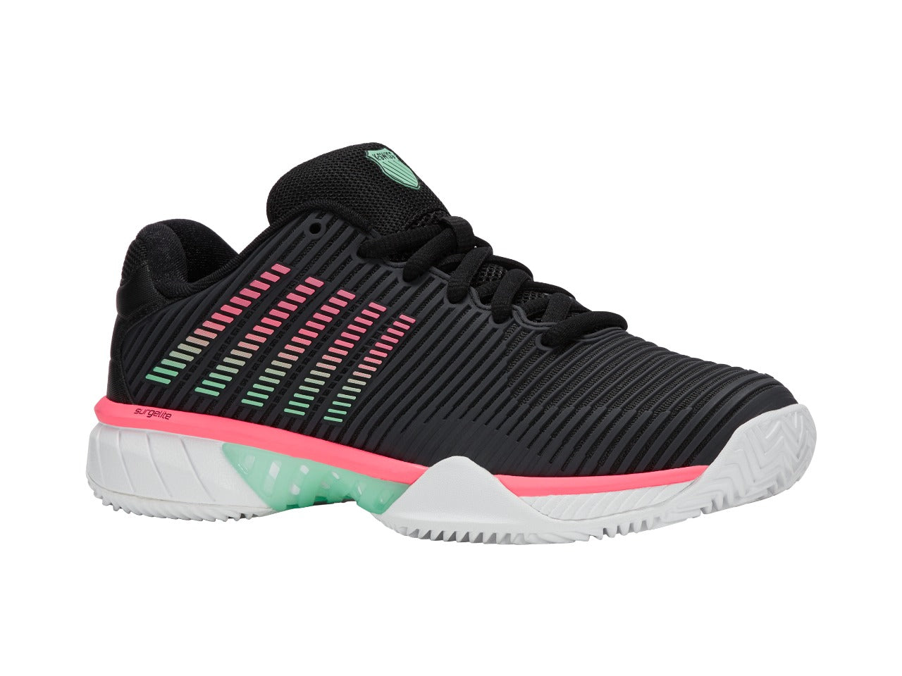 O tênis mais vendido da K-Swiss, o Hypercourt Express 2, é leve, confortável, respirável e tem um ajuste generoso, tornando-o a escolha ideal para uma variedade de estilos e níveis de jogo. O Durawrap Flex oferece suporte ao tênis sem período de amaciamento, enquanto a tecnologia Surgelite na entressola proporciona muito conforto.