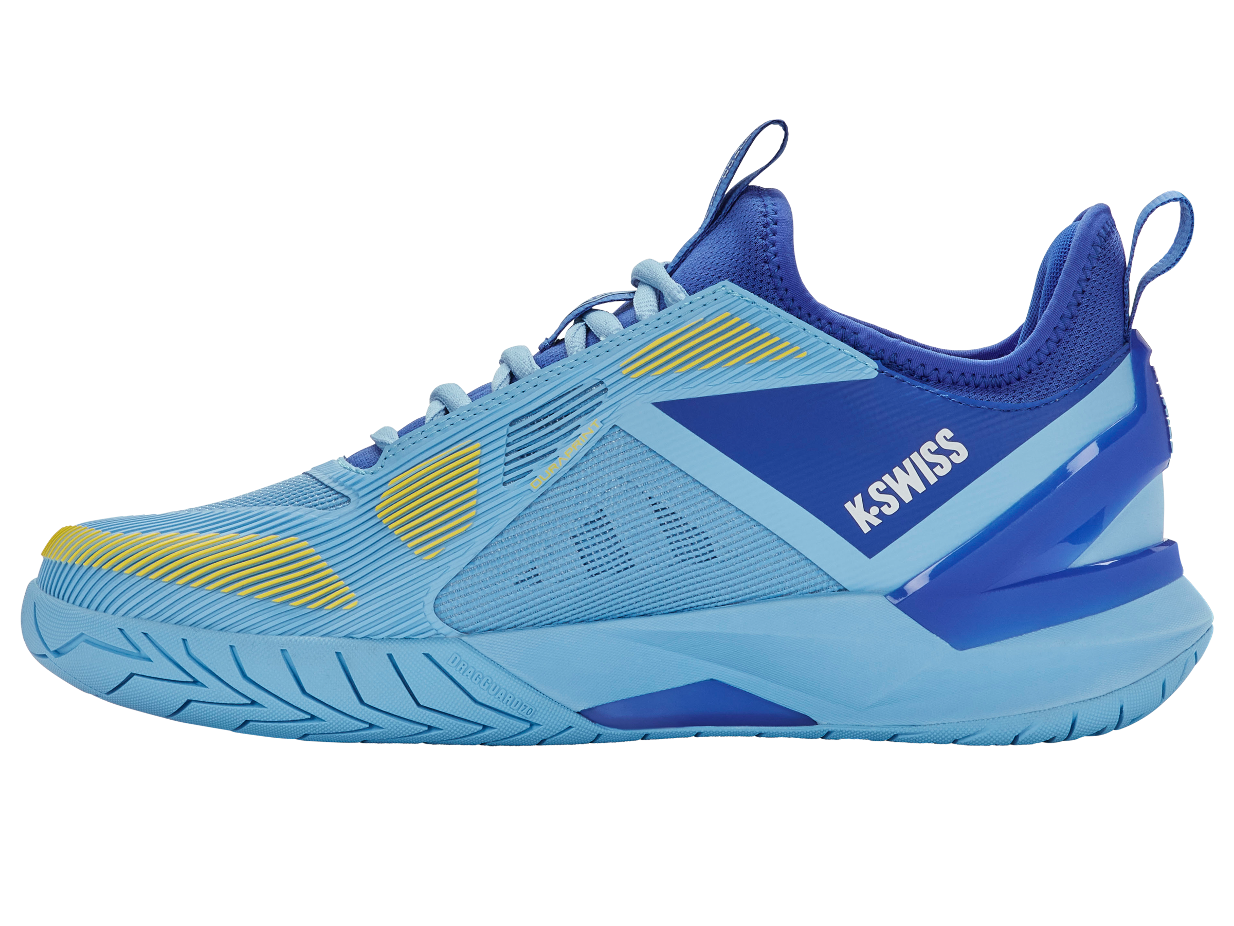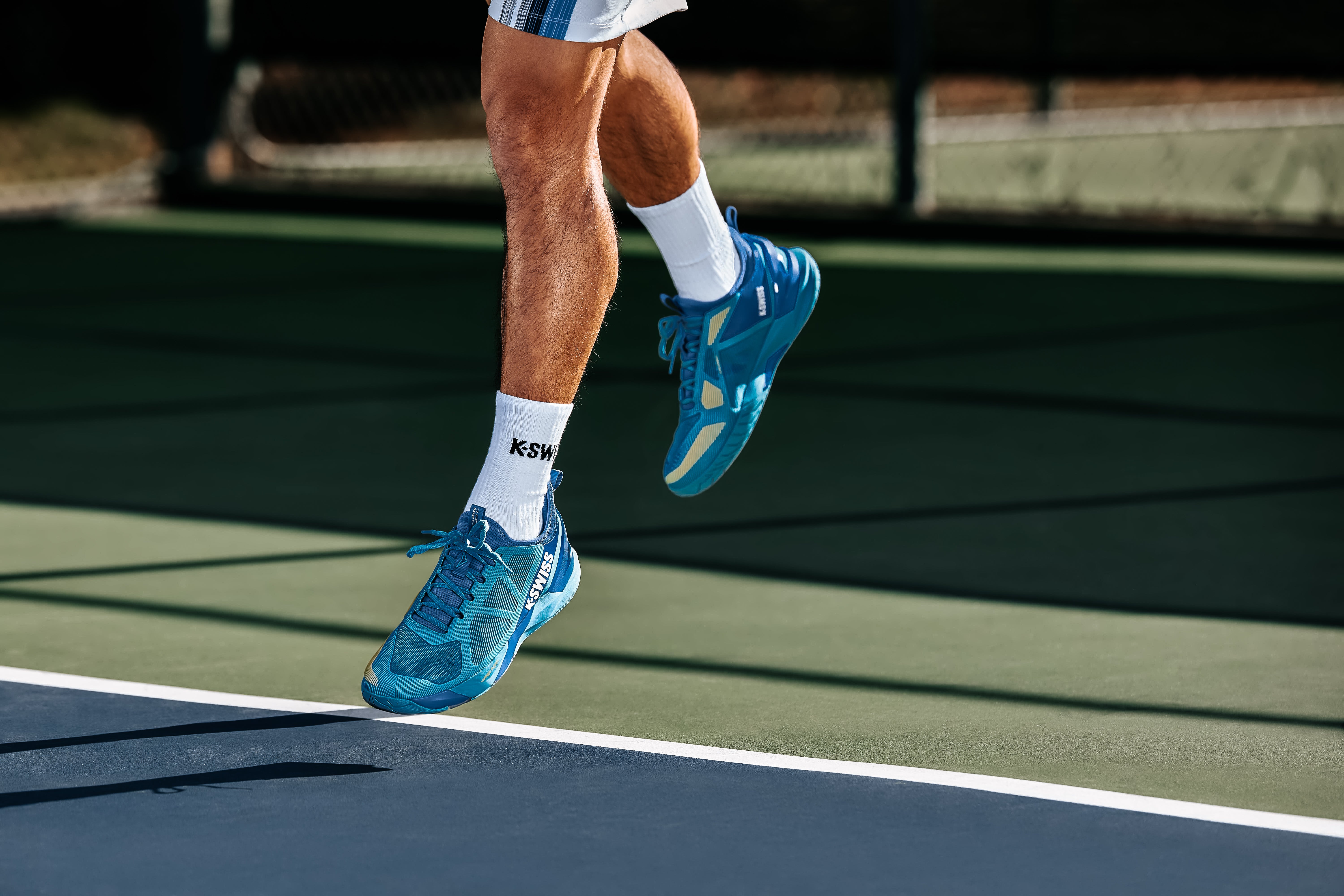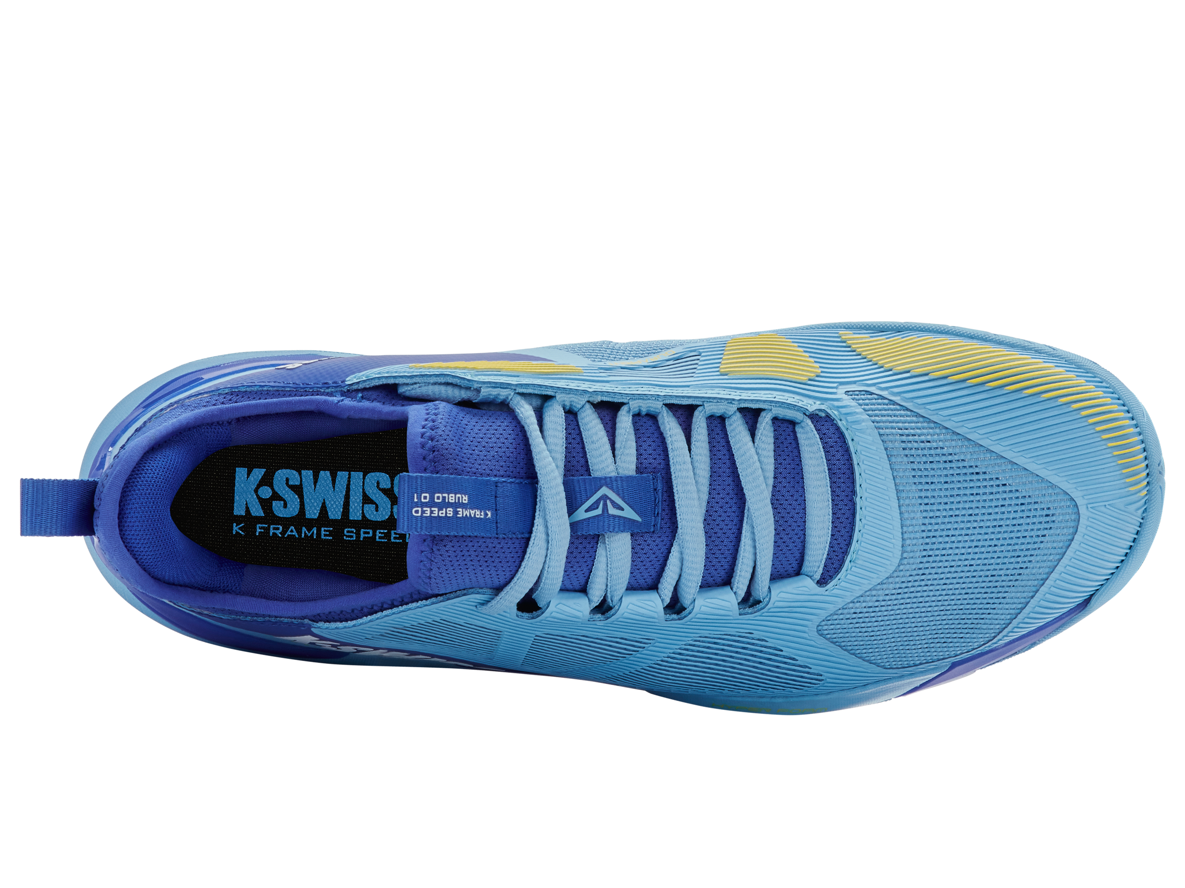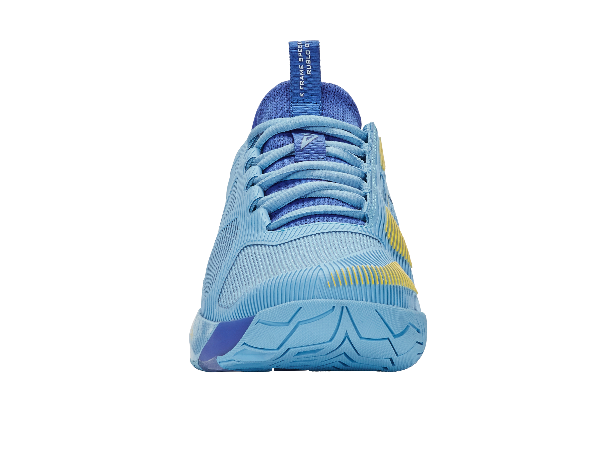Proporcionando a estabilidade e o conforto exigidos por um dos jogadores mais explosivos do circuito profissional, o K-Swiss K-Frame Speed Rublo foi desenvolvido pela K-Swiss em parceria com o astro da ATP Andrey Rublev. Equipado com uma inovadora estrutura em TPU K-Frame posicionada sob o antepé, o calçado oferece a estabilidade necessária para mudanças de direção rápidas e explosivas.