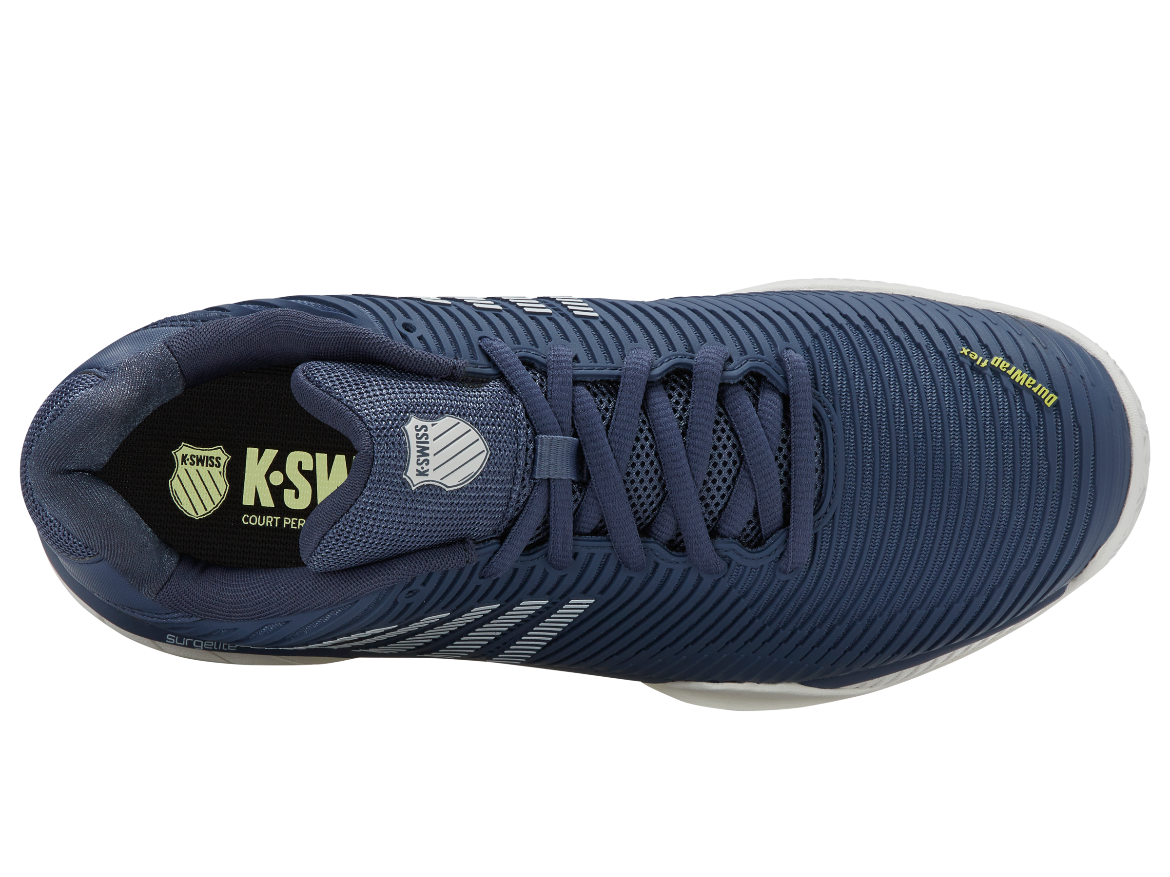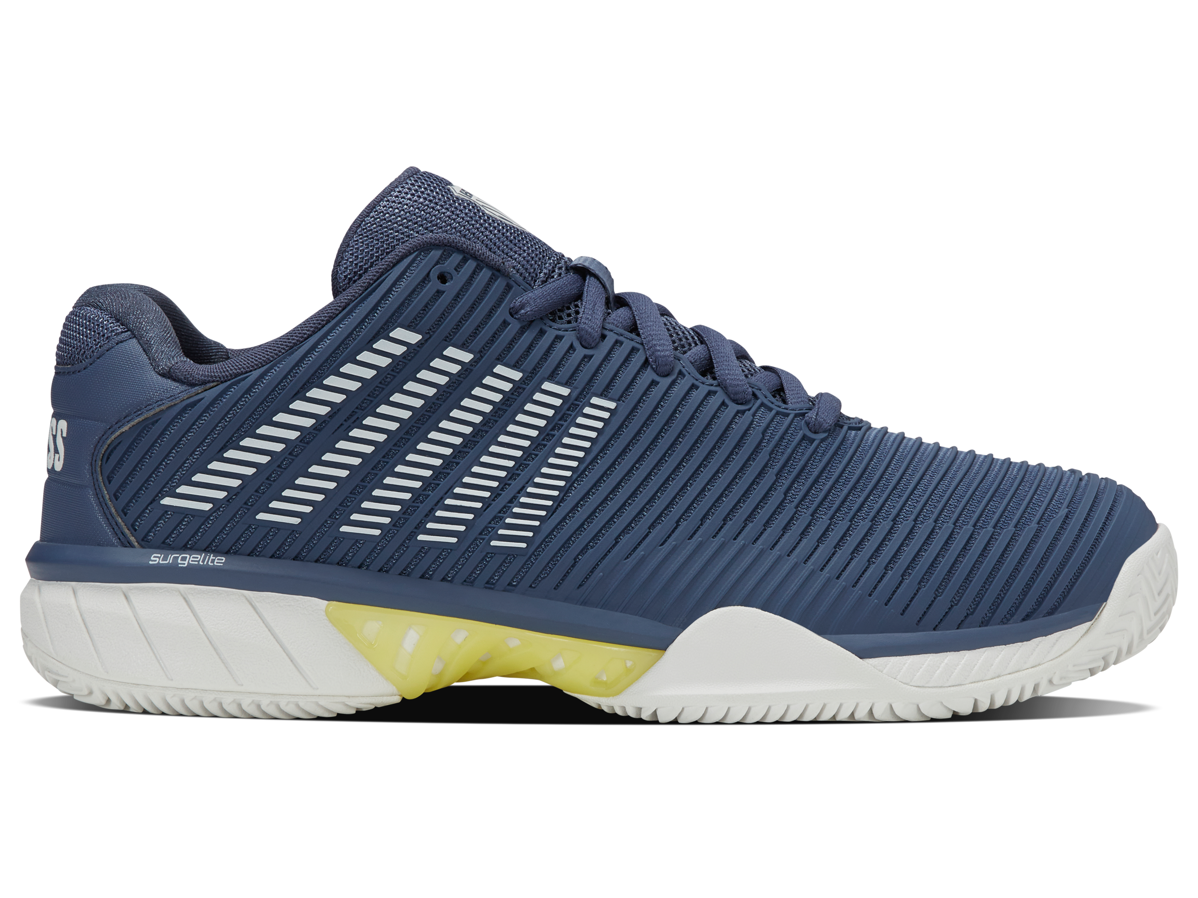O tênis mais vendido da K-Swiss, o Hypercourt Express 2, é leve, confortável, respirável e tem um ajuste generoso, tornando-o a escolha ideal para uma variedade de estilos e níveis de jogo. O Durawrap Flex oferece suporte ao tênis sem período de amaciamento, enquanto a tecnologia Surgelite na entressola proporciona muito conforto.